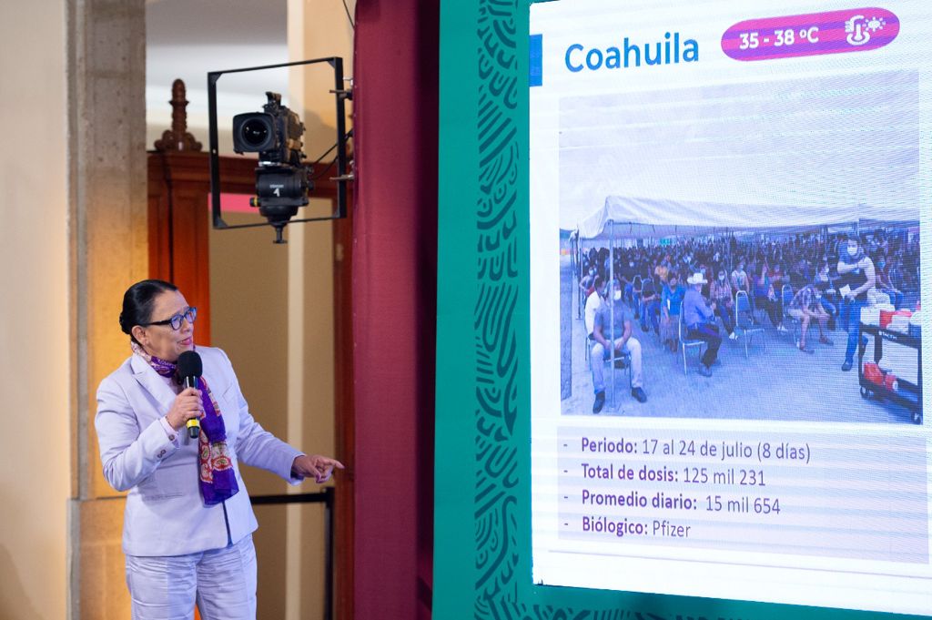 Rosa Icela Rodríguez Velázquez, secretaria de Seguridad y Protección Ciudadana, señaló que en la frontera norte se vacunó contra el coronavirus a 2.6 millones de personas de 18 a 39 años en 45 días.